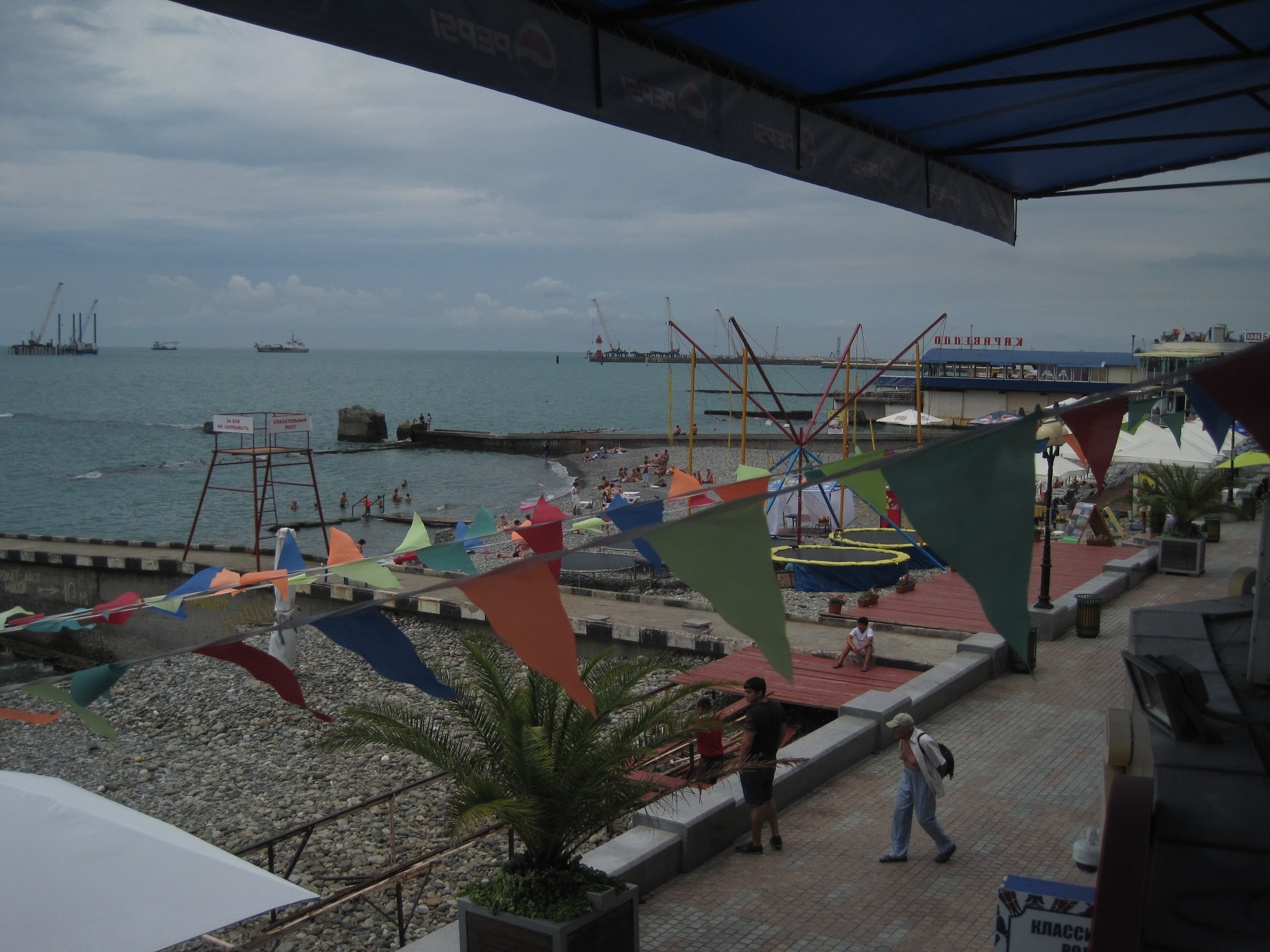 We make for the beach, hoping to get a better welcome there. Sveta describes barhopping along Sochi’s beach until the wee hours of the morning before going to sleep under the stars on one of the many public loungers. That was the Sochi of only five years ago. Most of the beaches, formerly all public, have now been taken over by private enterprises. The few tourists that do make an appearance head for one of only three remaining public areas. The Sochi beach before me has less going for it than Tim Tebow’s football career.