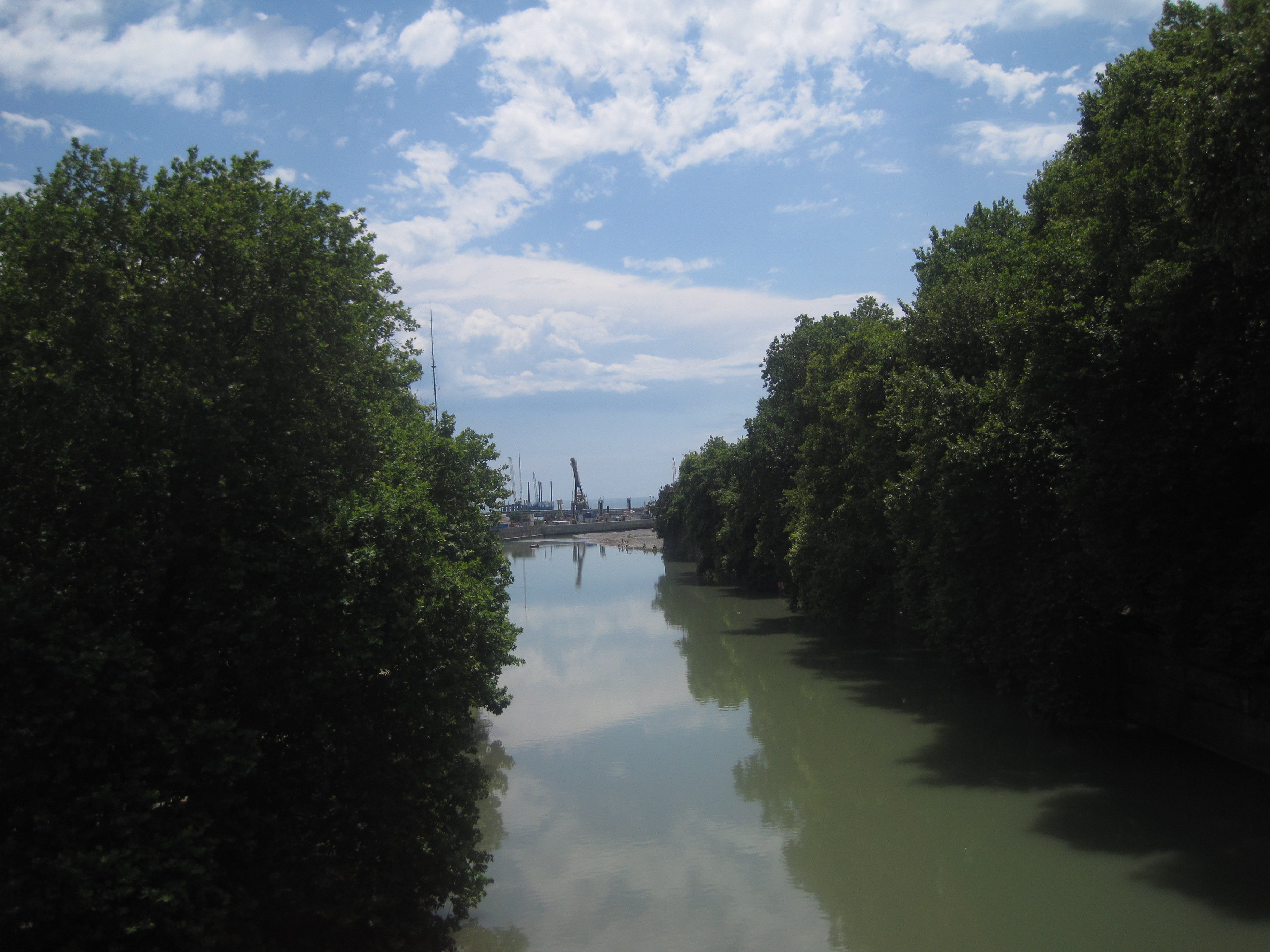 Moving coastlines isn’t the only bizarre thing I can see. To the north an ancient tree stump sits in the middle of a concrete sidewalk. “Why remove it when you can pave around it?” my companion asks. Just out to sea, crews are working on removing two halves of a Turkish ship that ran aground. It crashed over a year ago. Not to worry, if the new shore gets built before they’re done, they can just pave around it.